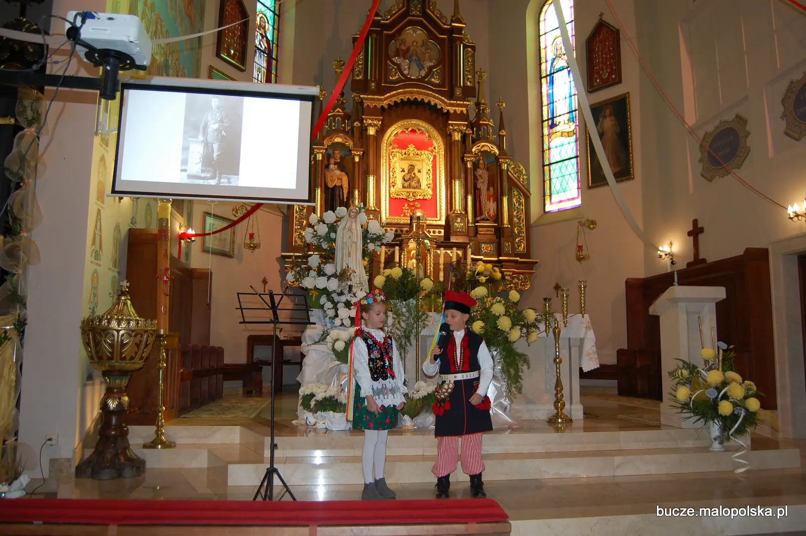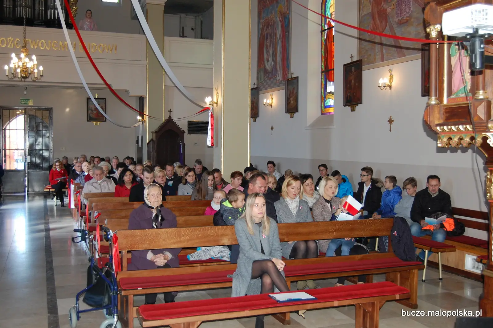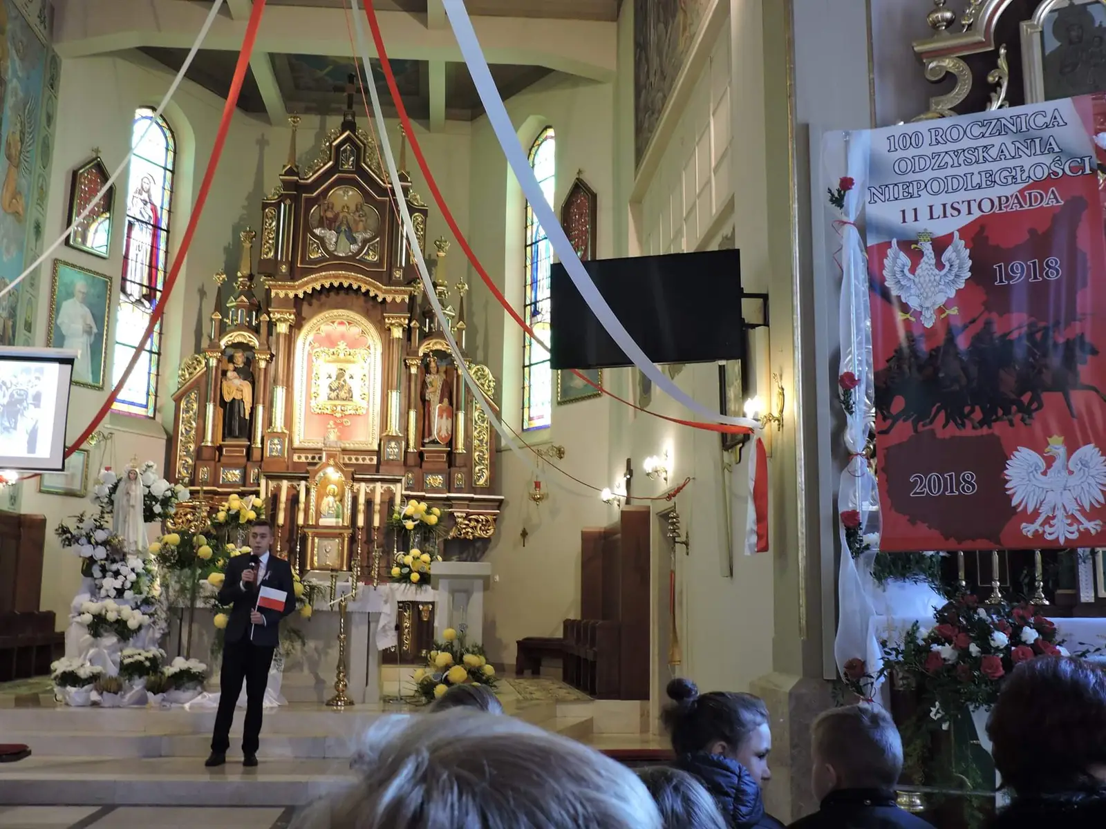 Świętowanie rozpoczęła uroczysta akademia w kościele parafialnym, gdzie dzieci szkolne oraz dorośli przedstawili historię odzyskania niepodległości przy animacji multimedialnej wraz ze śpiewem pieśni patriotycznych. Przed uroczystością rozdano wydane na tą okazję śpiewniki i wstążki biało-czerwone.