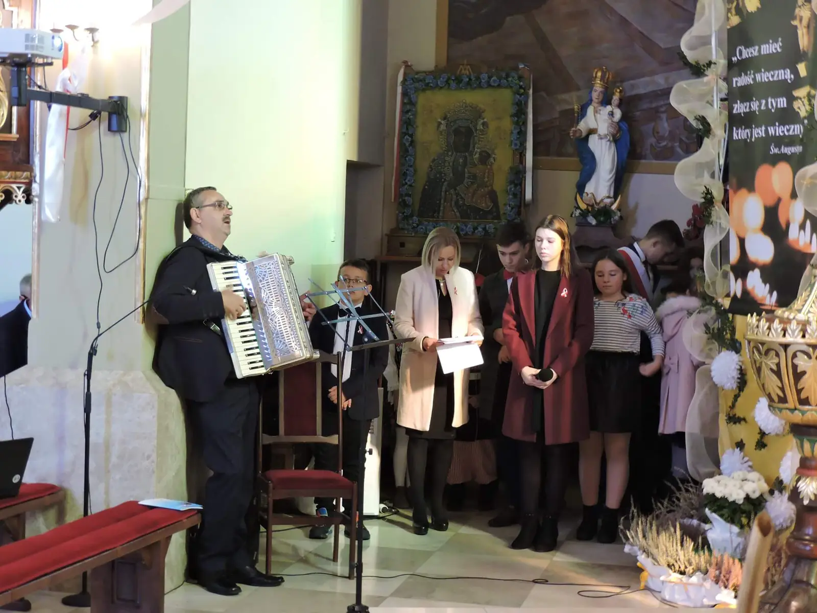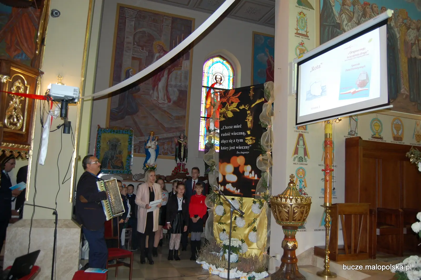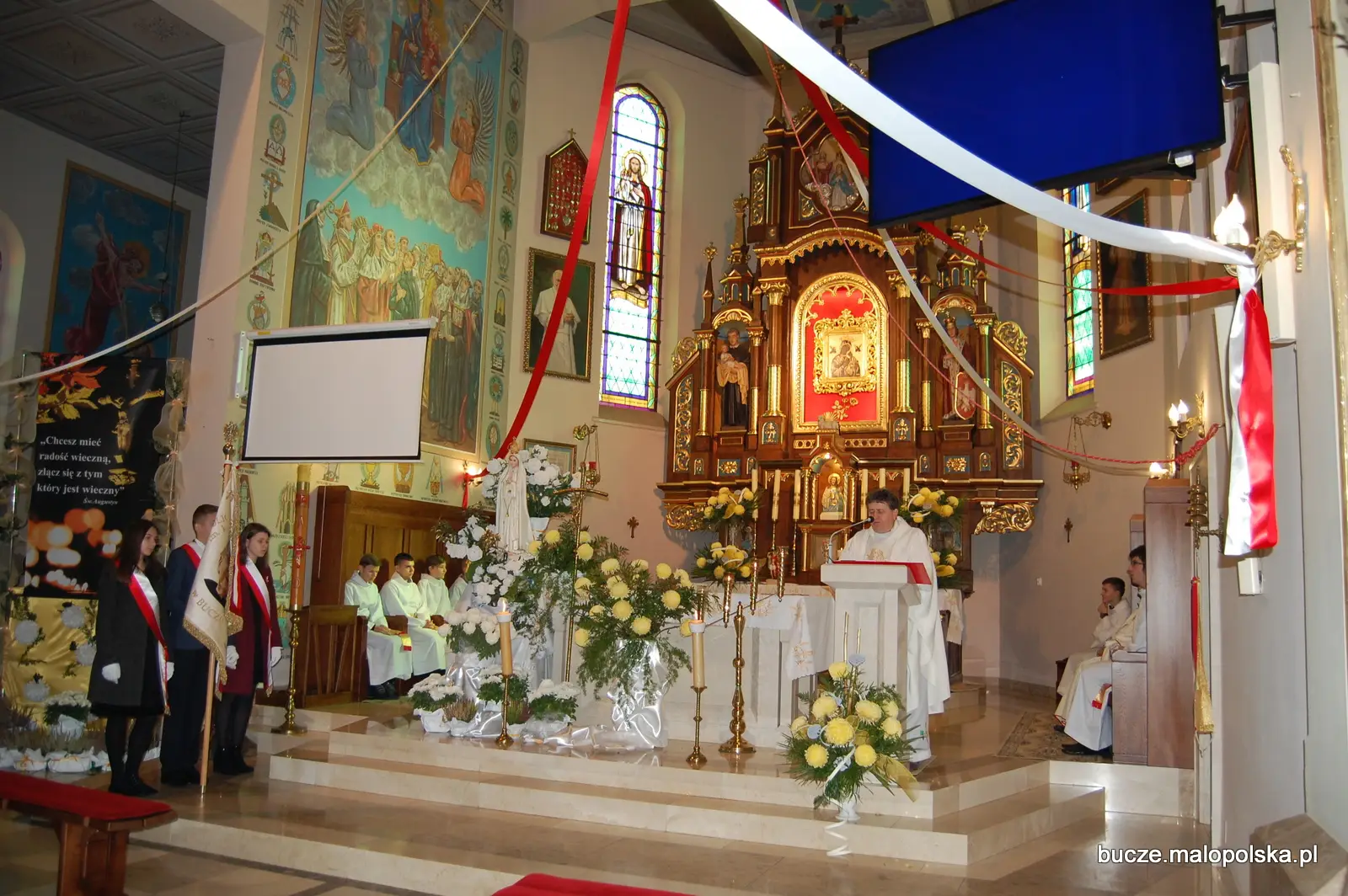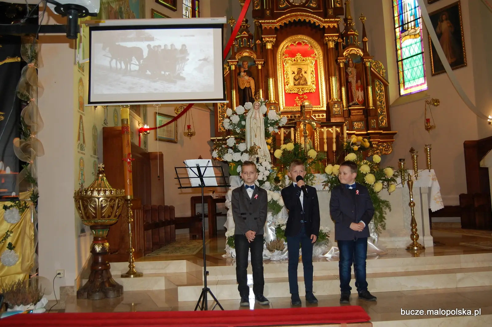 Świętowanie rozpoczęła uroczysta akademia w kościele parafialnym, gdzie dzieci szkolne oraz dorośli przedstawili historię odzyskania niepodległości przy animacji multimedialnej wraz ze śpiewem pieśni patriotycznych. Przed uroczystością rozdano wydane na tą okazję śpiewniki i wstążki biało-czerwone.