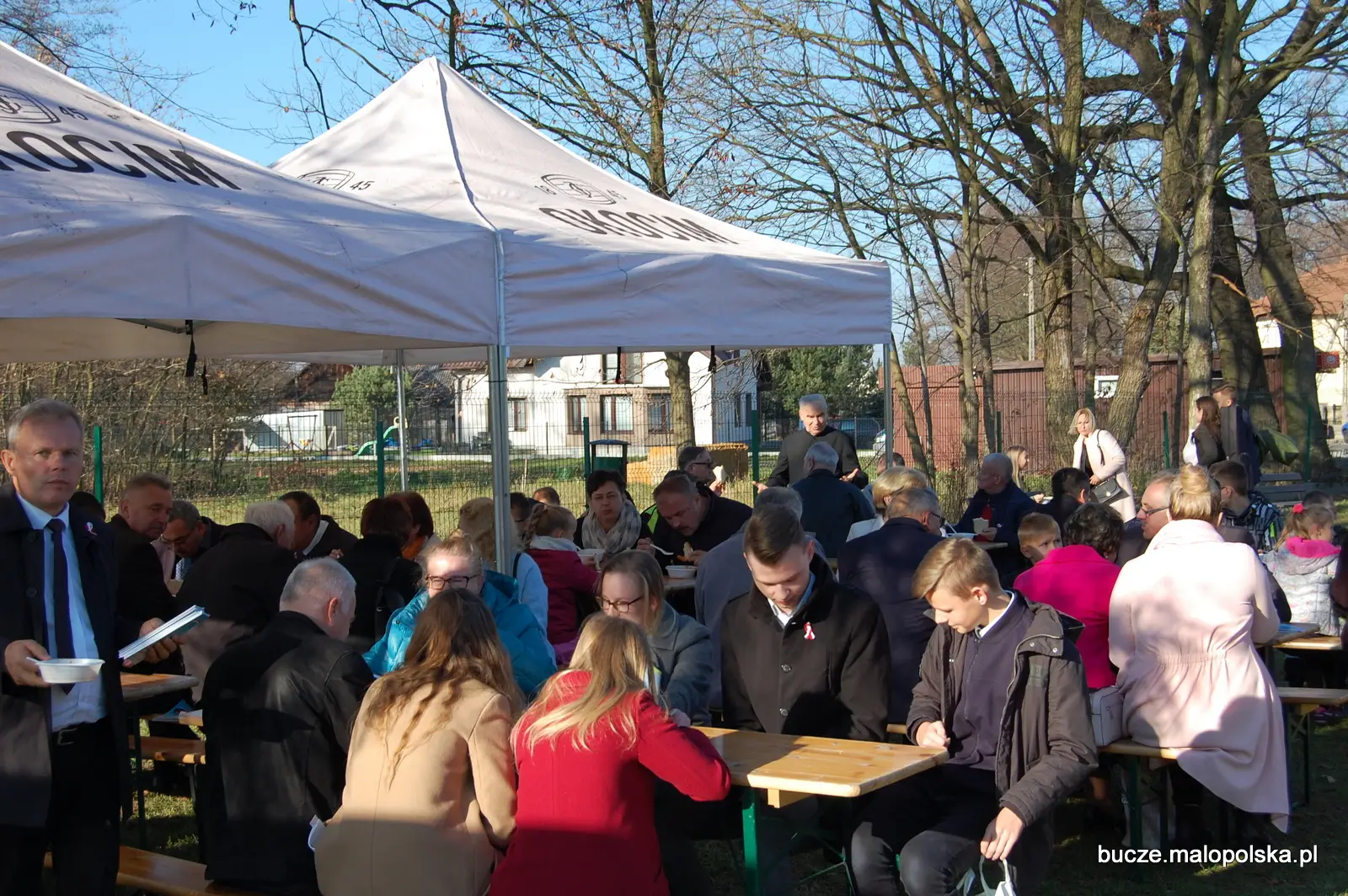 Po oficjalnych uroczystościach miała miejsce biesiada patriotyczna. Organizatorzy przygotowali pyszny bigos, a w międzyczasie śpiewano pieśni patriotyczne.