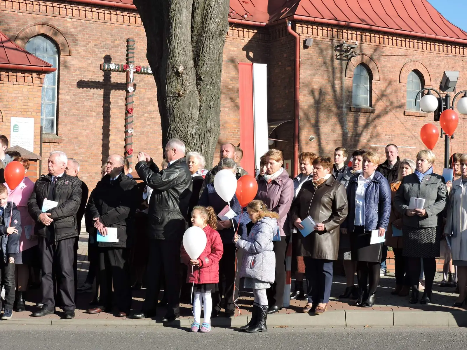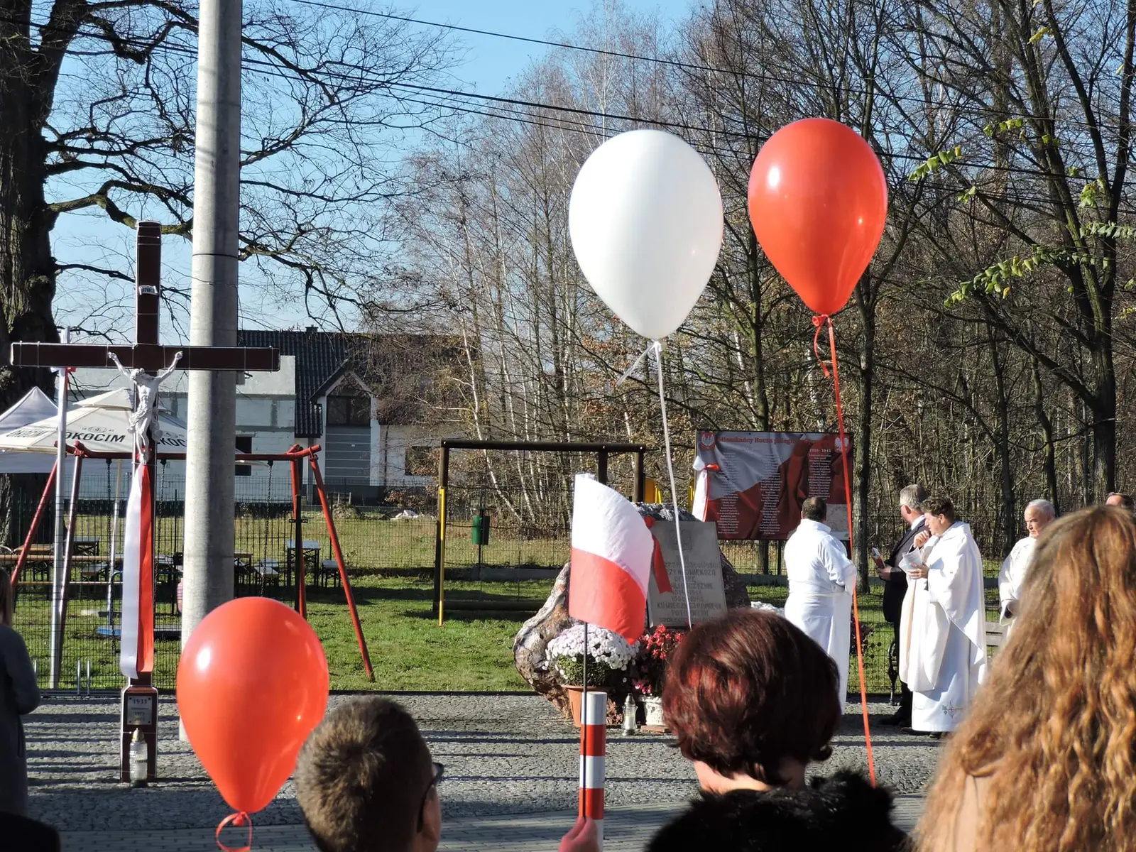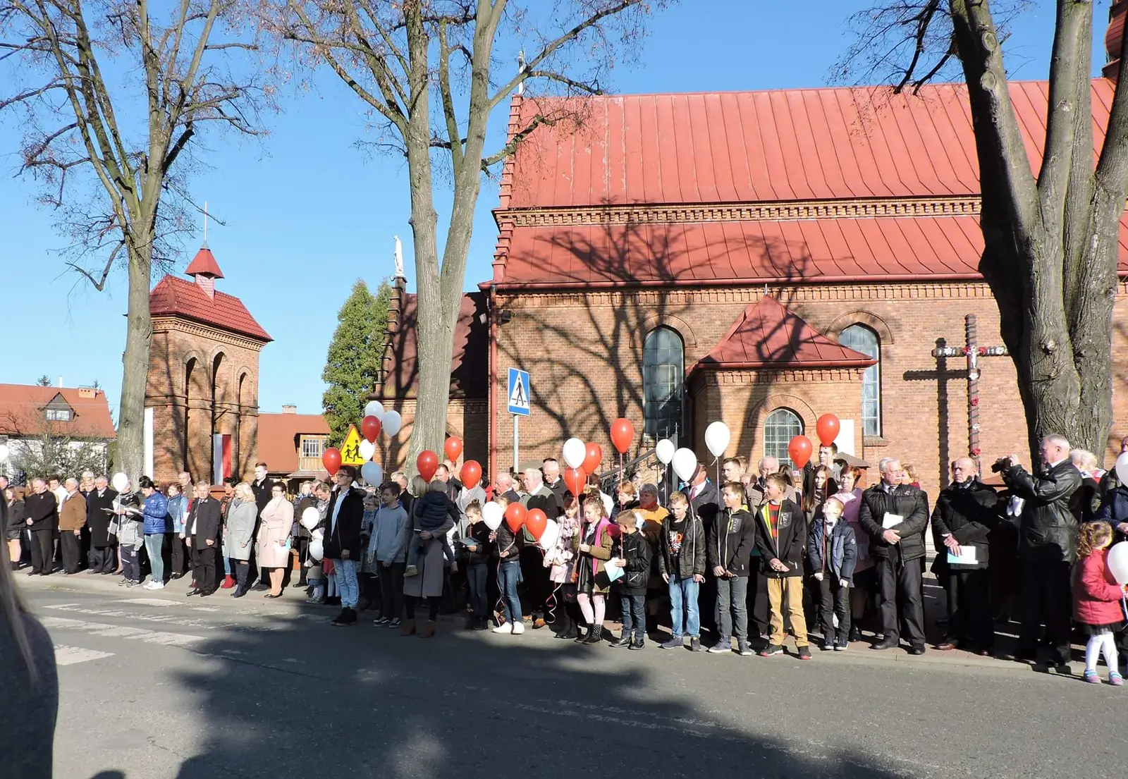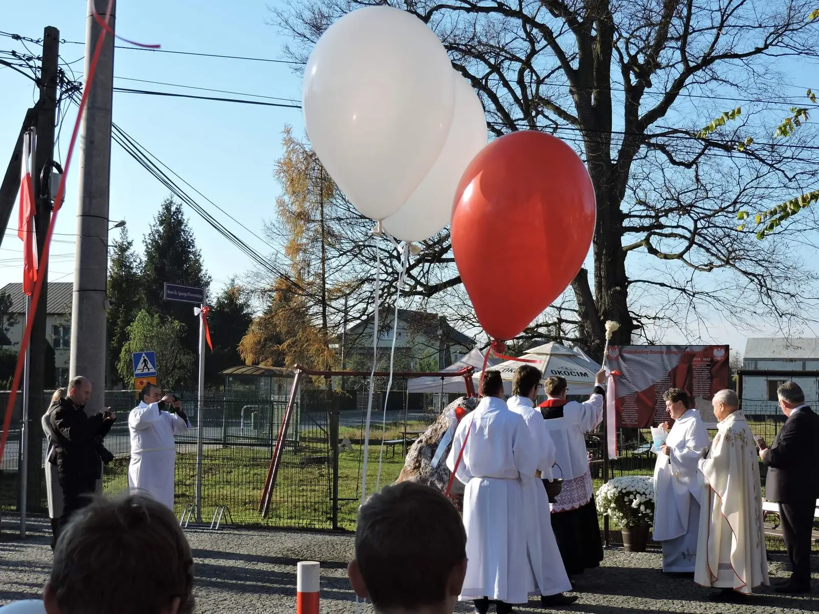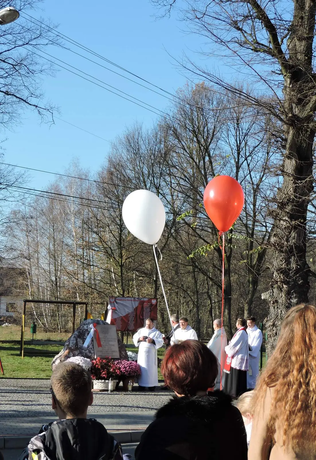 Następnie uroczystości przeniosły się pod plac z obeliskiem. Tam odśpiewano Mazurek Dąbrowskiego, wpisując się w ogólnopolską akcję. Zgromadzone dzieci otrzymały białe i czerwone balony.