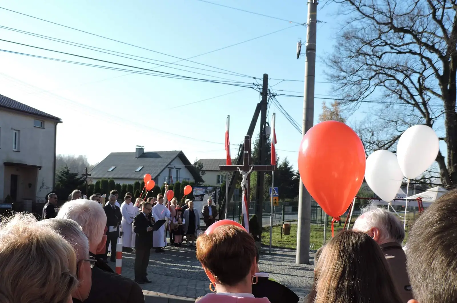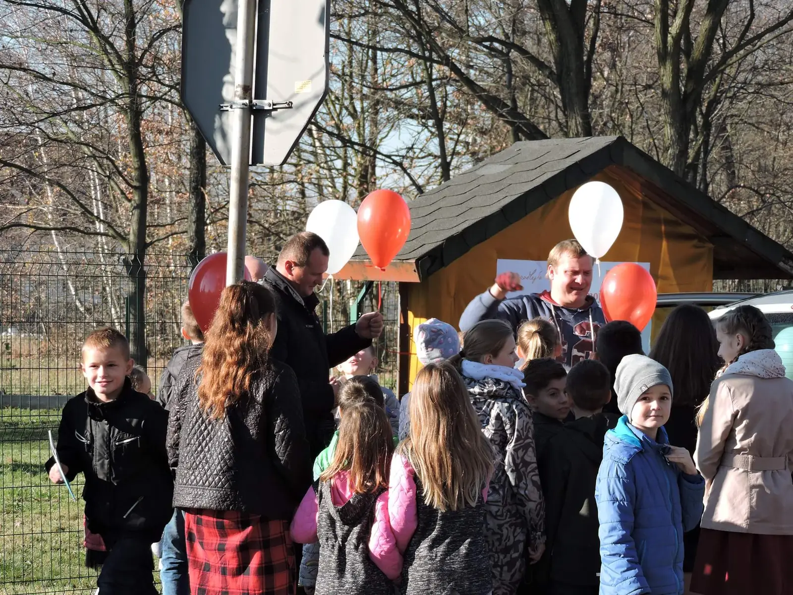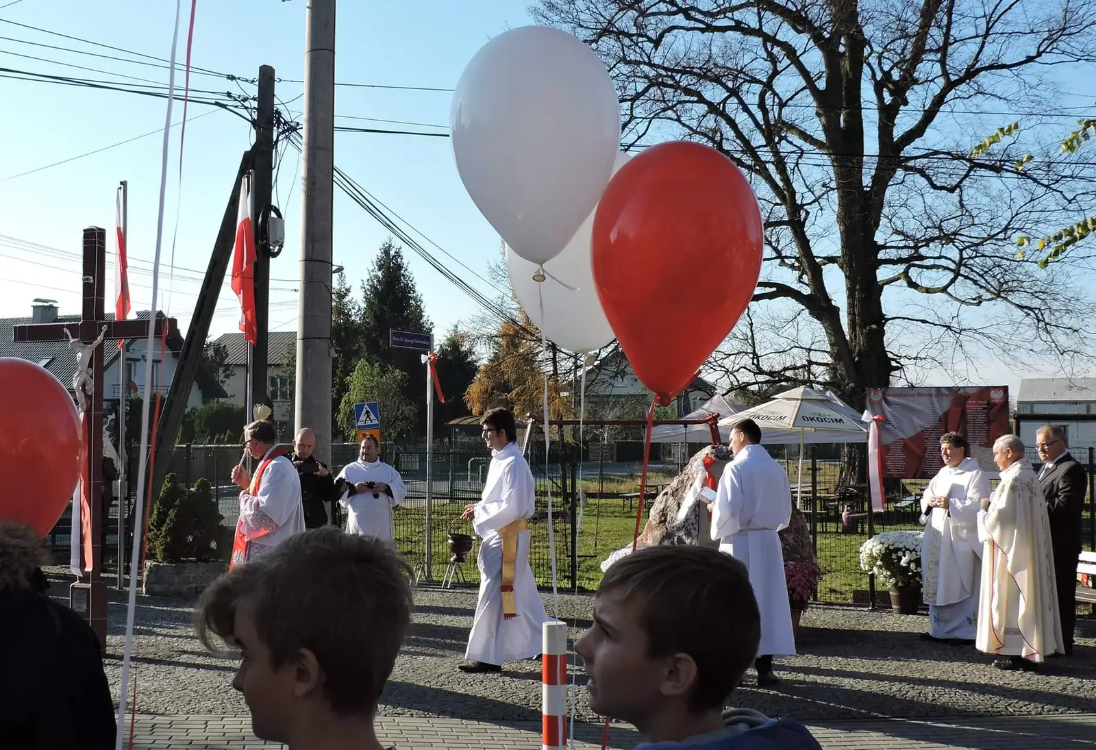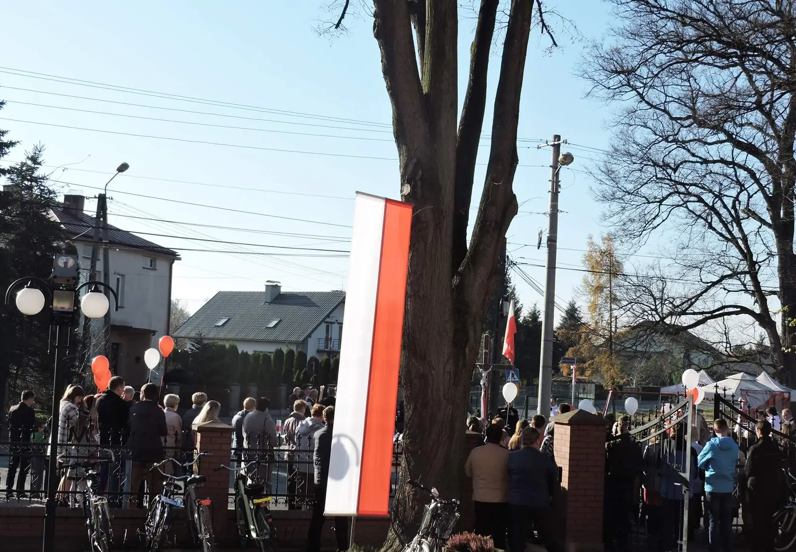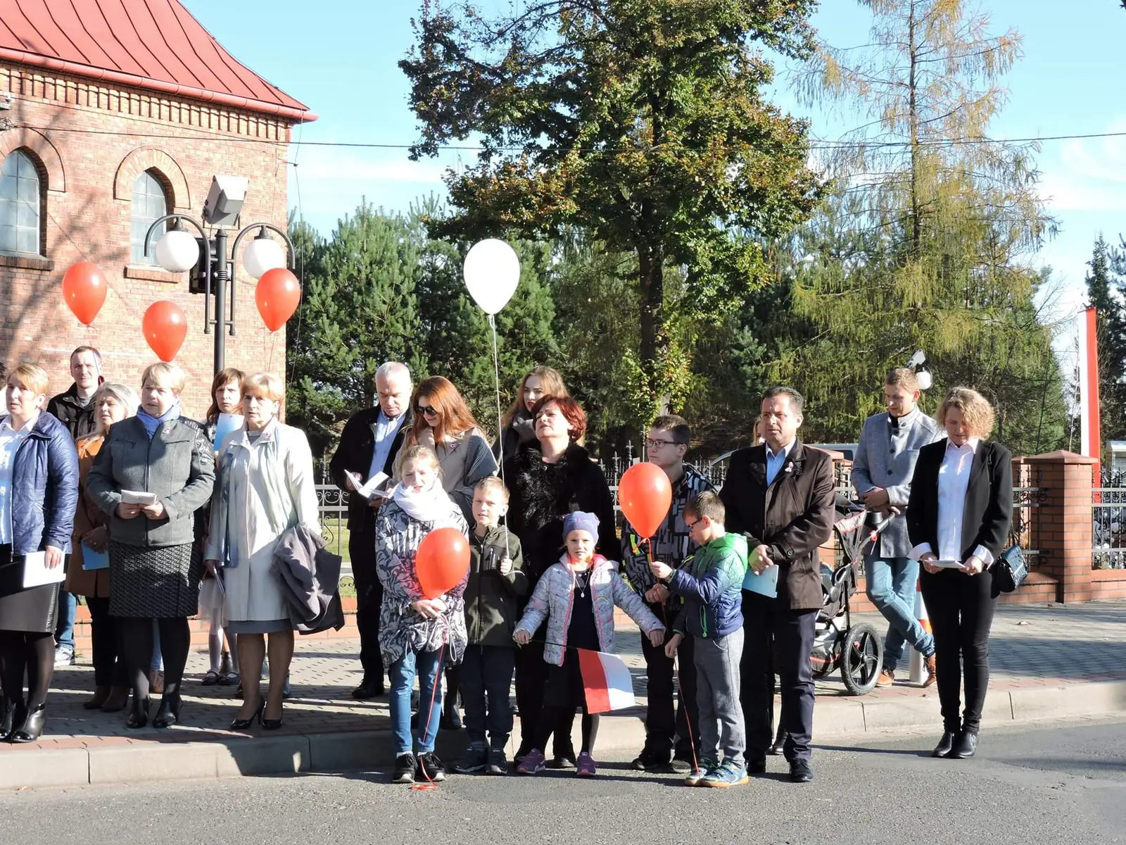 Następnie uroczystości przeniosły się pod plac z obeliskiem. Tam odśpiewano Mazurek Dąbrowskiego, wpisując się w ogólnopolską akcję. Zgromadzone dzieci otrzymały białe i czerwone balony.