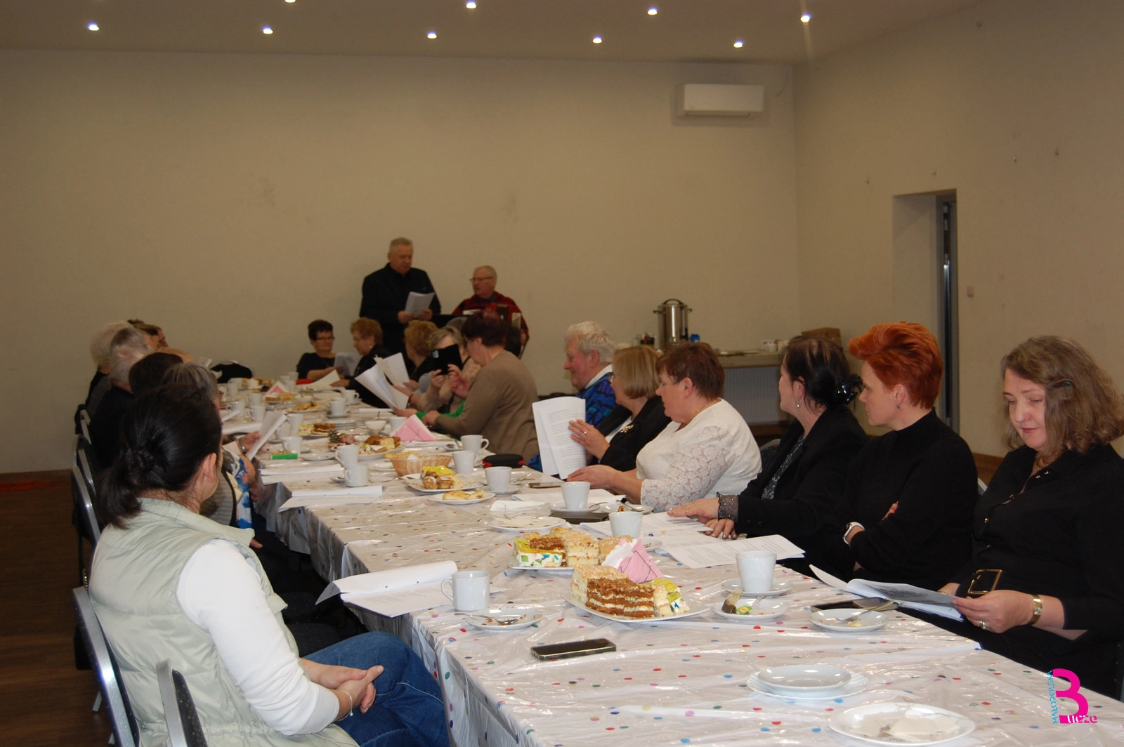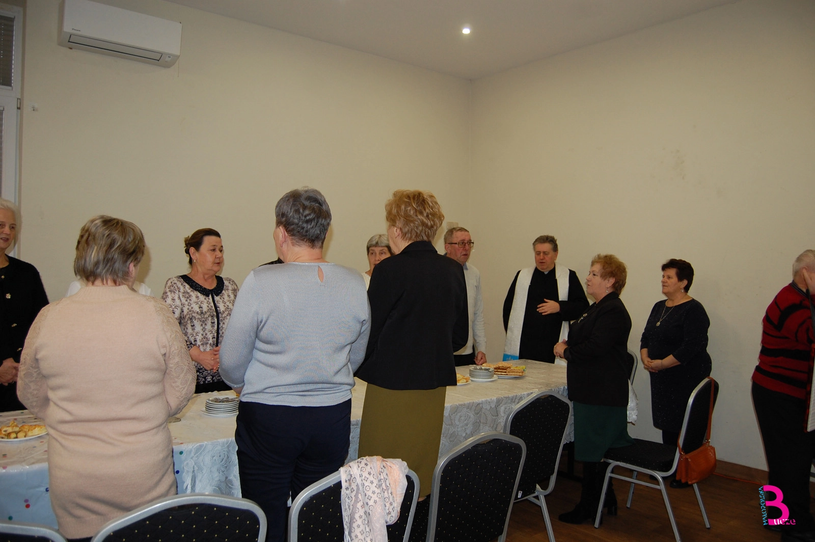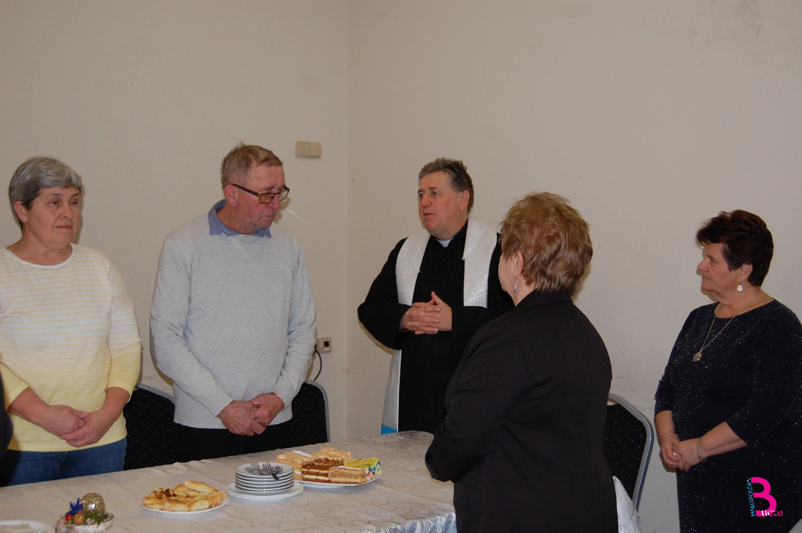 Wspólne świętowanie rozpoczęło się od modlitwy i błogosławieństwa opłatków przez ks. proboszcza Ryszarda Plutę. Następnie p. Irena Góra, reprezentując organizatorów i prezesa Stowarzyszenia, złożyła wszystkim zebranym życzenia noworoczne.